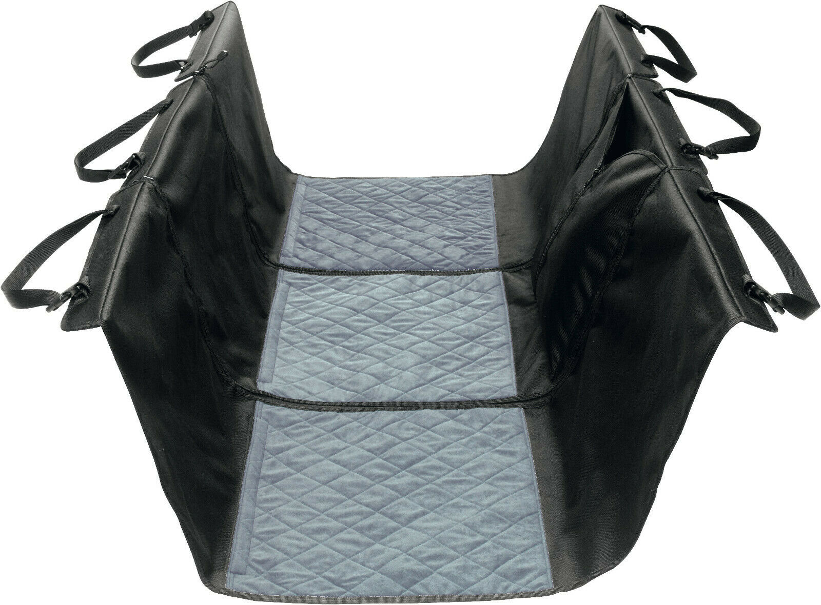 Made of particularly robust material, the Car Protection Blanket COMFORT protects your car's rear seating area from dirt and hair. The Car Protection Blanket is simple to fit and easy to clean. It features a padded seat area, with slots for the car safety harness, and can be fastened to the car's headrests via adjustable belts. It furthermore provides you with a small pocket with a zip for accessories. The Car Protection Blanket COMFORT is suitable for use in most cars.